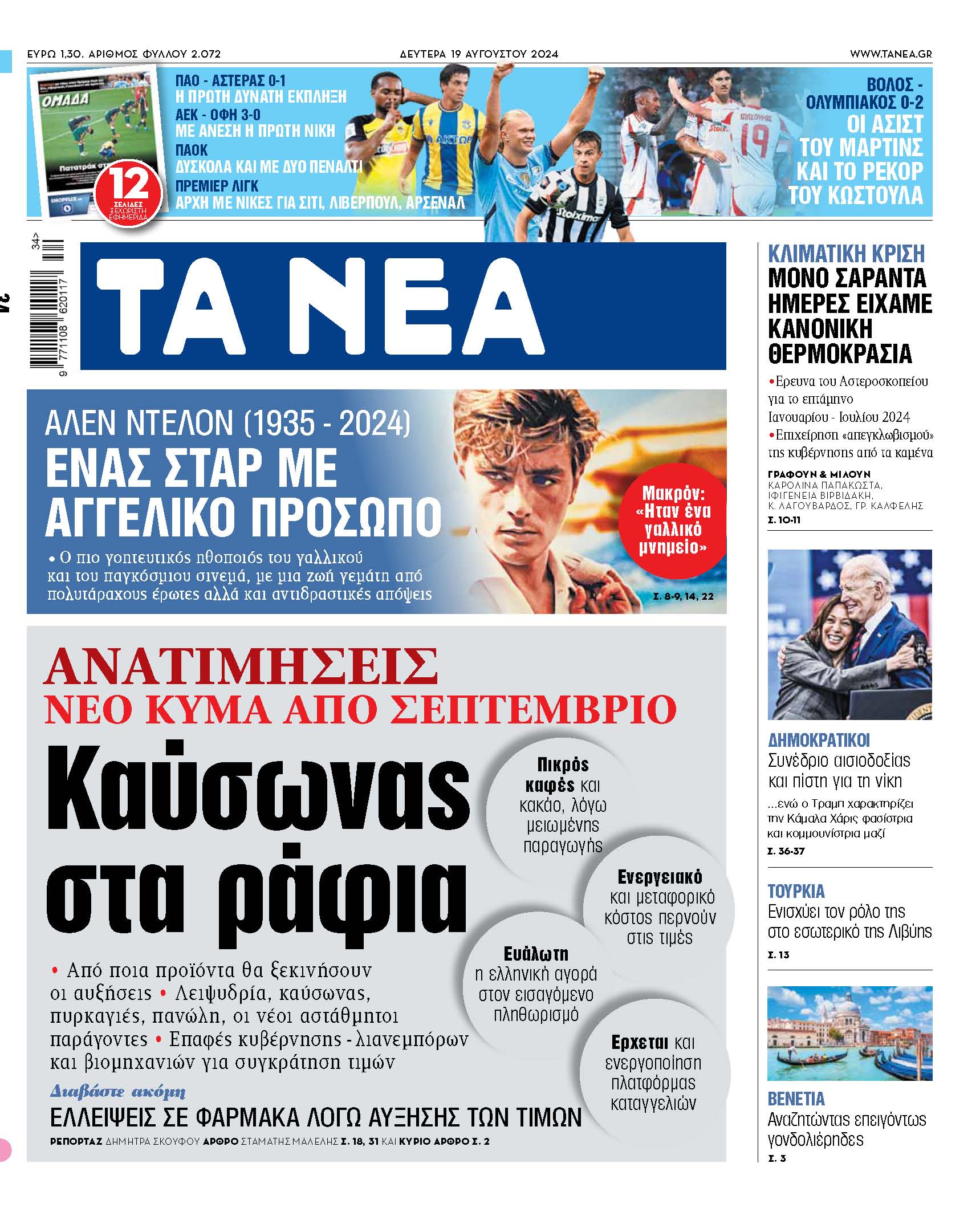 Στα «ΝΕΑ» της Δευτέρας: Καύσωνας στα ράφια