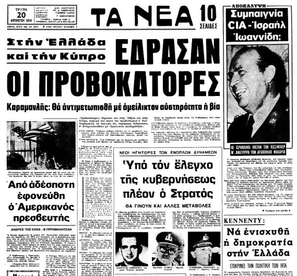 «ΤΑ ΝΕΑ», 20.8.1974, Ιστορικό Αρχείο «ΤΟ ΒΗΜΑ» & «ΤΑ ΝΕΑ»