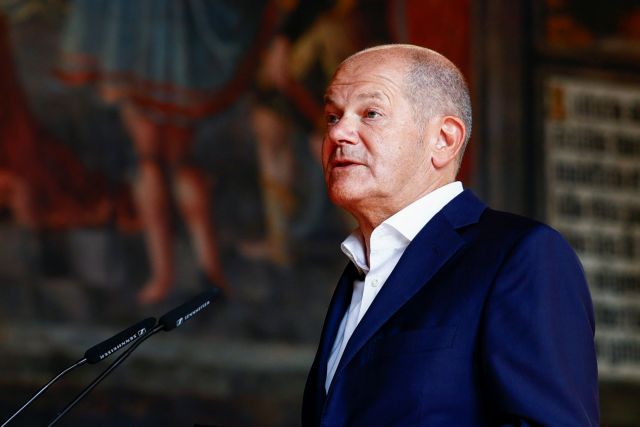 Η γερμανική κυβέρνηση διέψευσε χθες Δευτέρα εκτιμήσεις που διατυπώνονται για το ότι θα βάλει όρια στην υποστήριξη που παρέχει στην Ουκρανία εξαιτίας των δημοσιονομικών αναγκών της (στη φωτογραφία αρχείου του Reuters/Leon Kuegeler, επάνω, ο Ολαφ Σολτς).