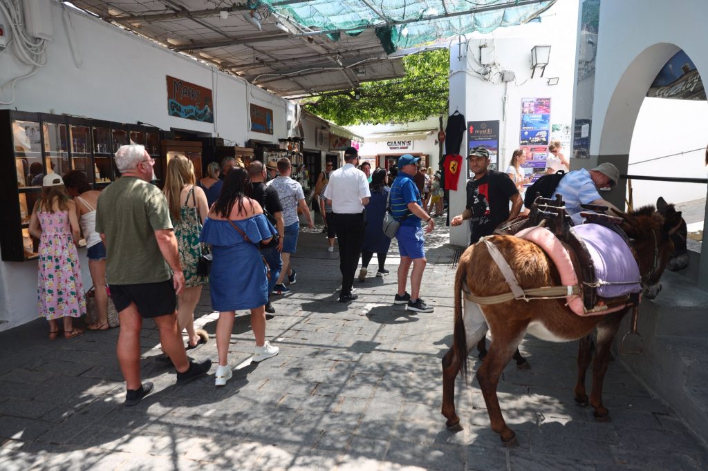 Τουρίστες στον παραδοσιακό οικισμό της Λίνδου, στη Ρόδο.