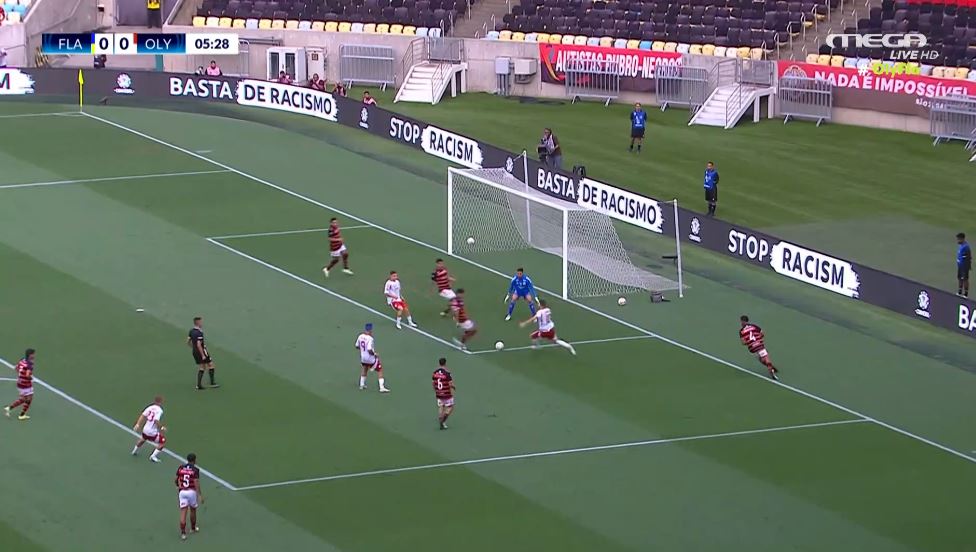 Ο Ολυμπιακός ξεκίνησε δυνατά τον τελικό κόντρα στην Φλαμένγκο και οι «ερυθρόλευκοι» είχαν την πρώτη μεγάλη ευκαιρία του αγώνα στο πέμπτο λεπτό.