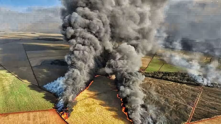 Here is another video of sugarcane fields on fire in Sao Paulo state in #Brazil, the number 1 #sugar producer in the country. Any spark near the extremelly dry fields after months without rains can generate huge fires. #environment#climatepic.twitter.com/ut1TFF6JpB