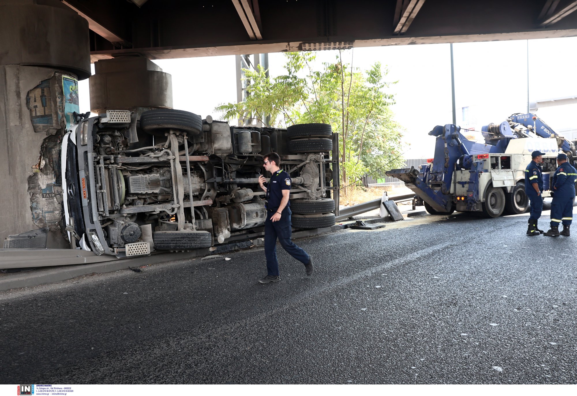 Τροχαίο στον Κηφισό: Ανετράπη νταλίκα – Στο «κόκκινο» η κίνηση