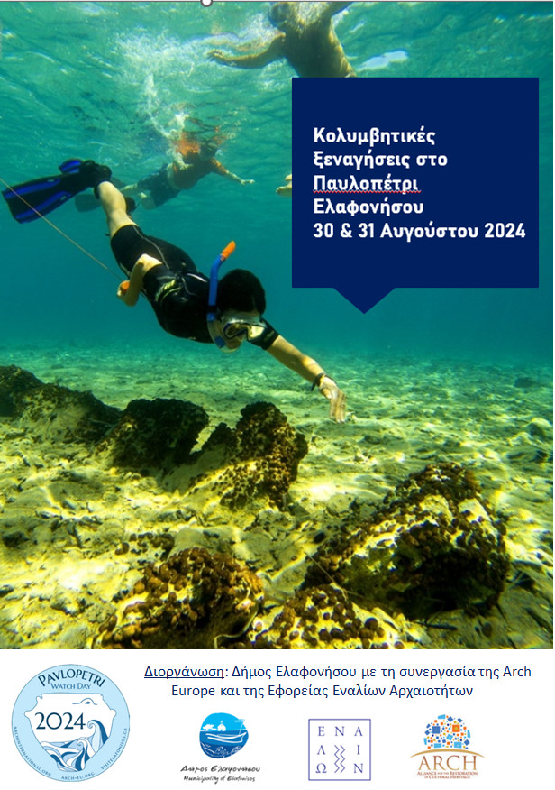 Pavlopetri Watch Day: Στις 30 και 31 Αυγούστου, ο Δήμος Ελαφονήσου σε συνεργασία με την ARCH Europe και την Εφορεία Εναλίων Αρχαιοτήτων διοργανώνουν κολυμβητικές ξεναγήσεις ανοιχτές στο κοινό με σκοπό τη γνωριμία με το Παυλοπέτρι και την ευαισθητοποίηση για τους κινδύνους που το απειλούν.