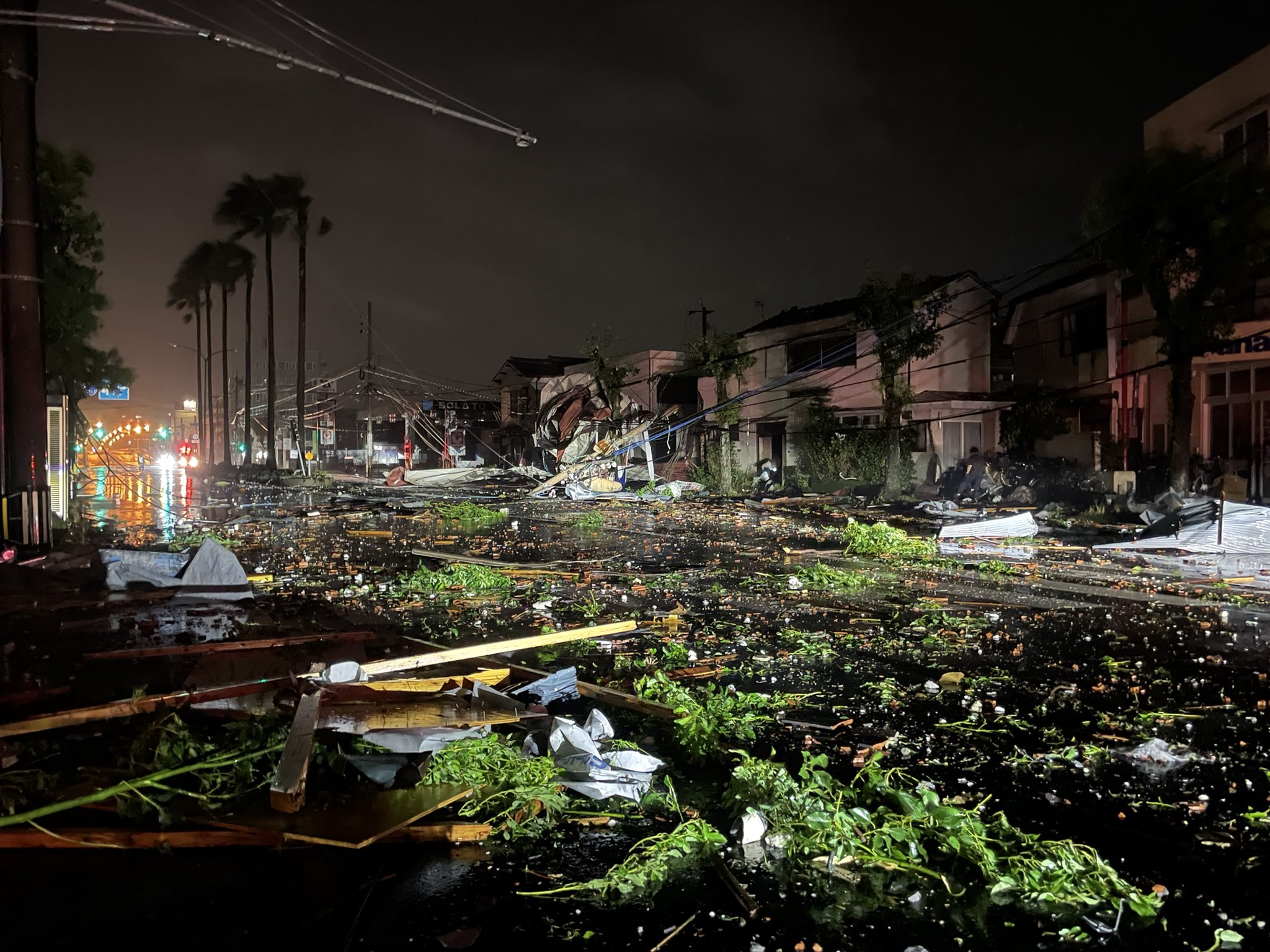 Ο τυφώνας Σανσάν, που χαρακτηρίζεται ο ισχυρότερος της χρονιάς στην Ιαπωνία, έφθασε πάνω από τo έδαφος σήμερα το πρωί στη μεγαλύτερη νήσο του νότιου τμήματος της χώρας, την Κιούσου, όπου αναφέρθηκαν οι πρώτες ζημιές (στη φωτογραφία από το Χ, επάνω, δρόμος στην πόλη Μιγιαζάκι).
