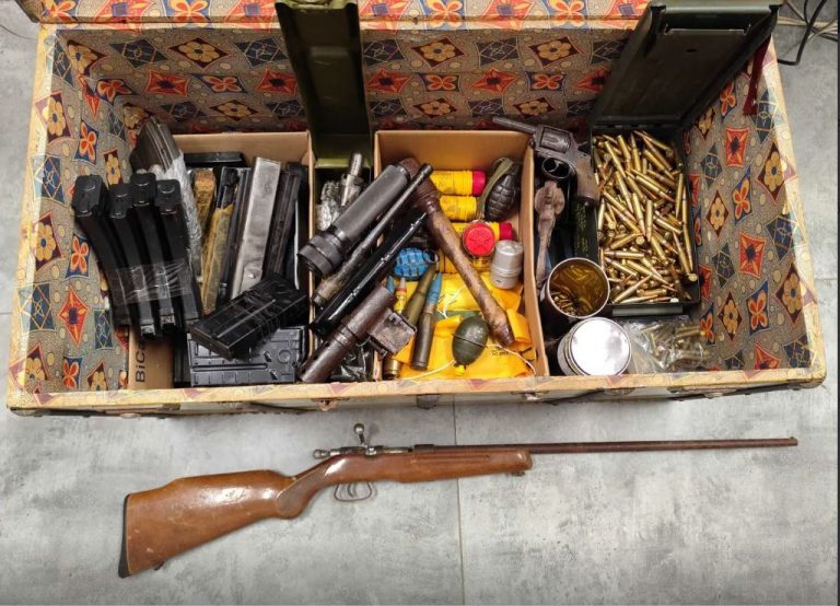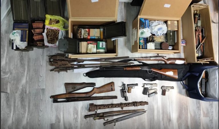 Για την υπόθεση συνελήφθησαν σήμερα δυο άνδρες, ηλικίας 50 και 51 ετών, σε βάρος των οποίων σχηματίστηκε κακουργηματικού χαρακτήρα δικογραφία για παραβάσεις της νομοθεσίας περί όπλων.