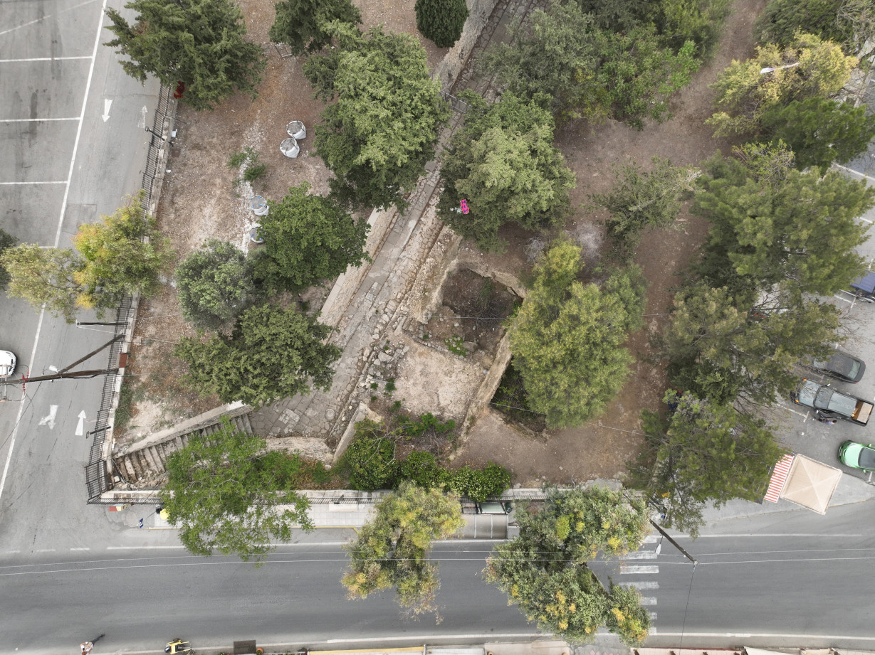 Το πεζοδρόμιο από τον βόρειο χώρο στάθμευσης προς την περιοχή εισόδου, που διέρχεται δίπλα από το άκρο της υποκείμενης «Βασιλικής οδού», διευρύνεται.