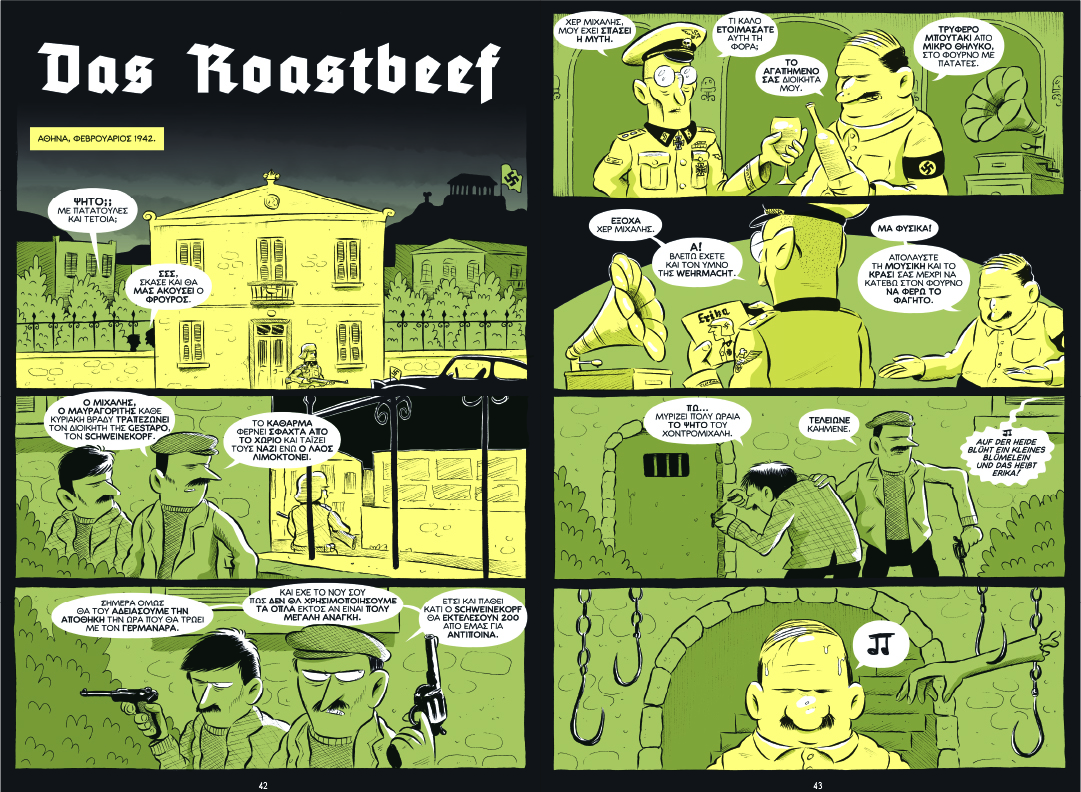 Καθημερινά, από τις 10:00 έως τις 16:00, στην αίθουσα Νέοι Φούρνοι οι επισκέπτες της έκθεσης ανακαλύπτουν έργα δεκατεσσάρων Ελλήνων δημιουργών κόμικς που αφηγούνται ιστορίες για την Αθήνα της Κατοχής, επικεντρωμένες στους ανθρώπους που έβλεπαν ή ονειρεύονταν «γλυκά ξημερώματα» τη στιγμή που βίωναν σκοτεινές ημέρες, ζοφερές νύχτες, εφιαλτικές εποχές.