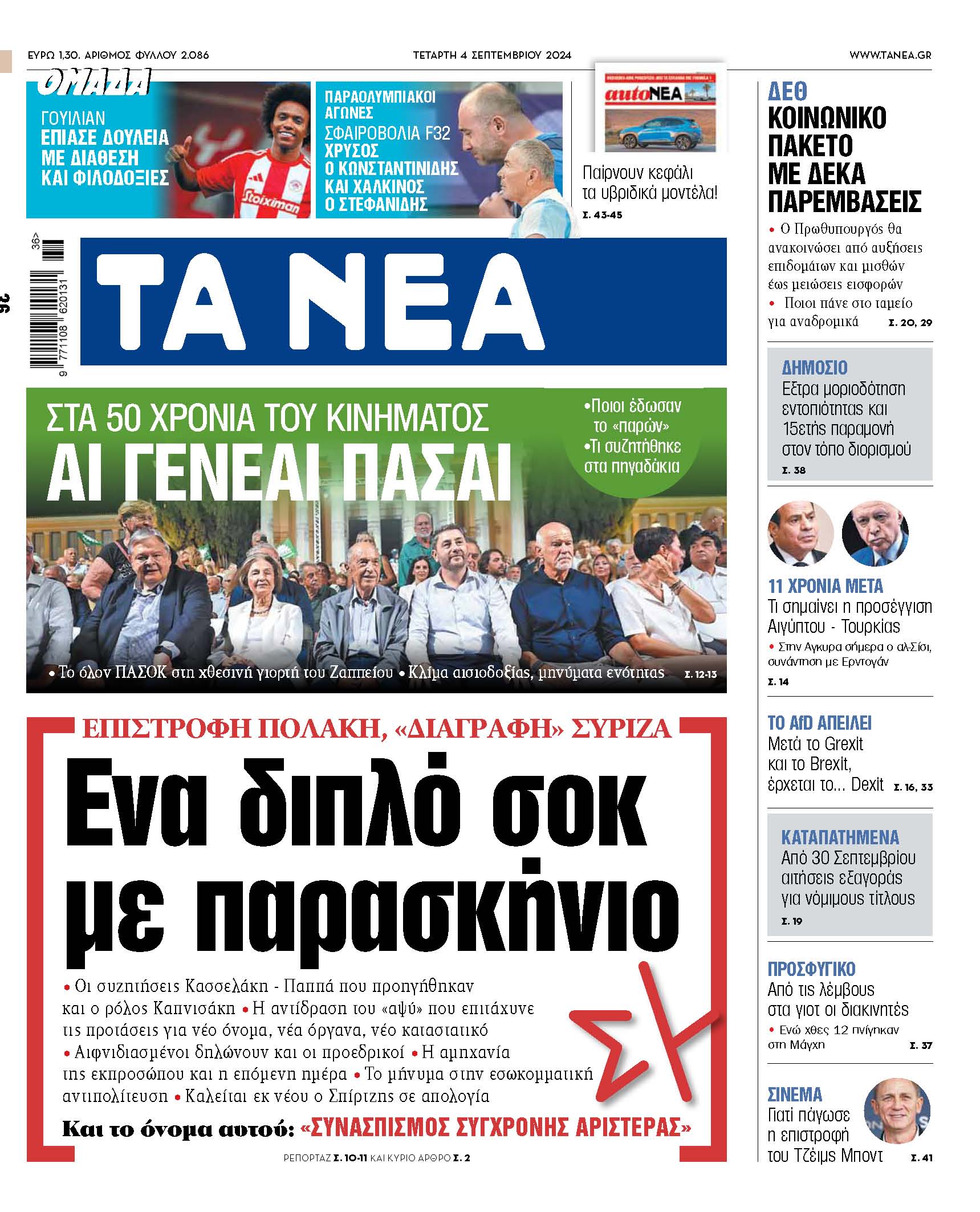 Στα «ΝΕΑ» της Τετάρτης: Ενα διπλό σοκ με παρασκήνιο