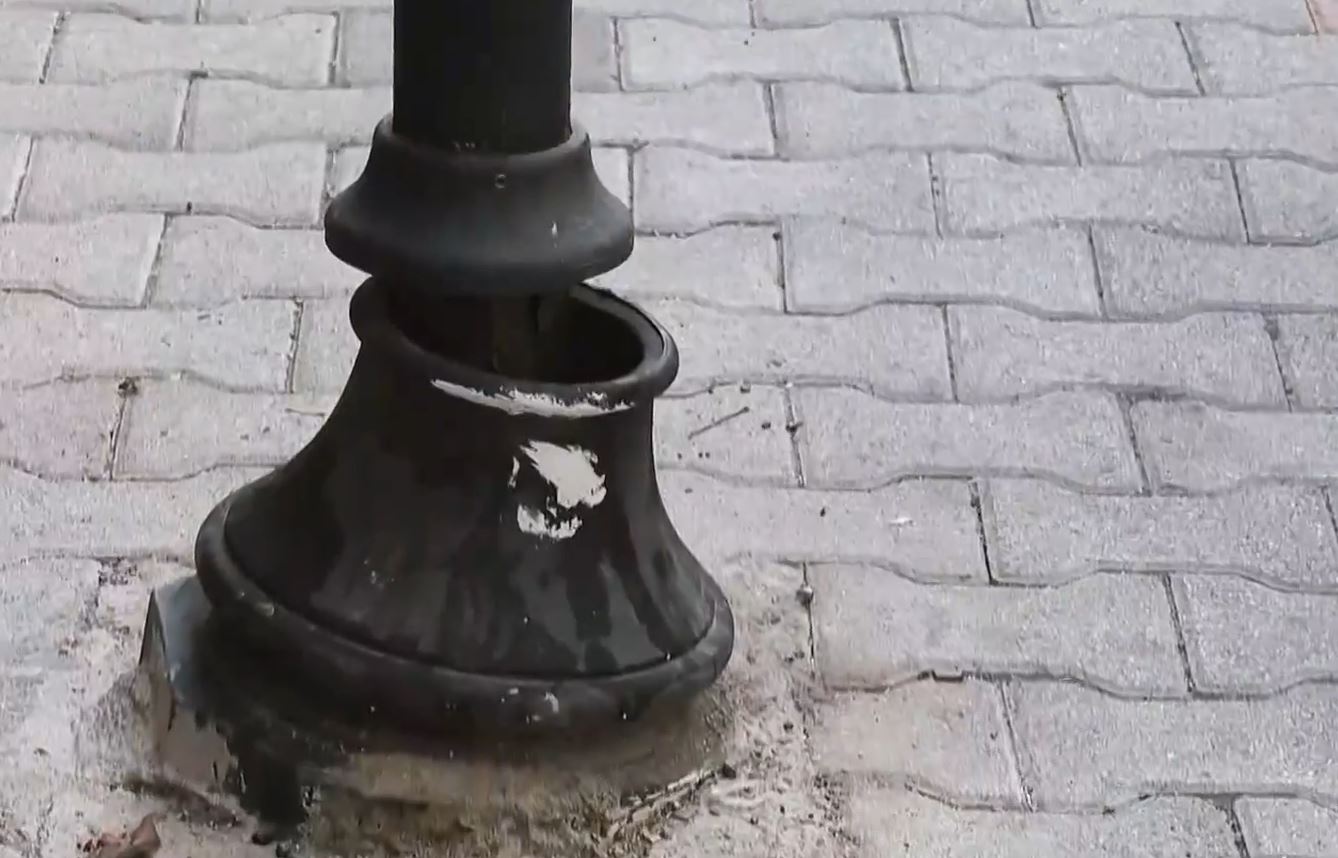 Στον Βύρωνα η εικόνα μιλάει από μόνη της, σκουριά ξανά και ξανά και διαλυμένες ετοιμόρροπες κολόνες φωτισμού.