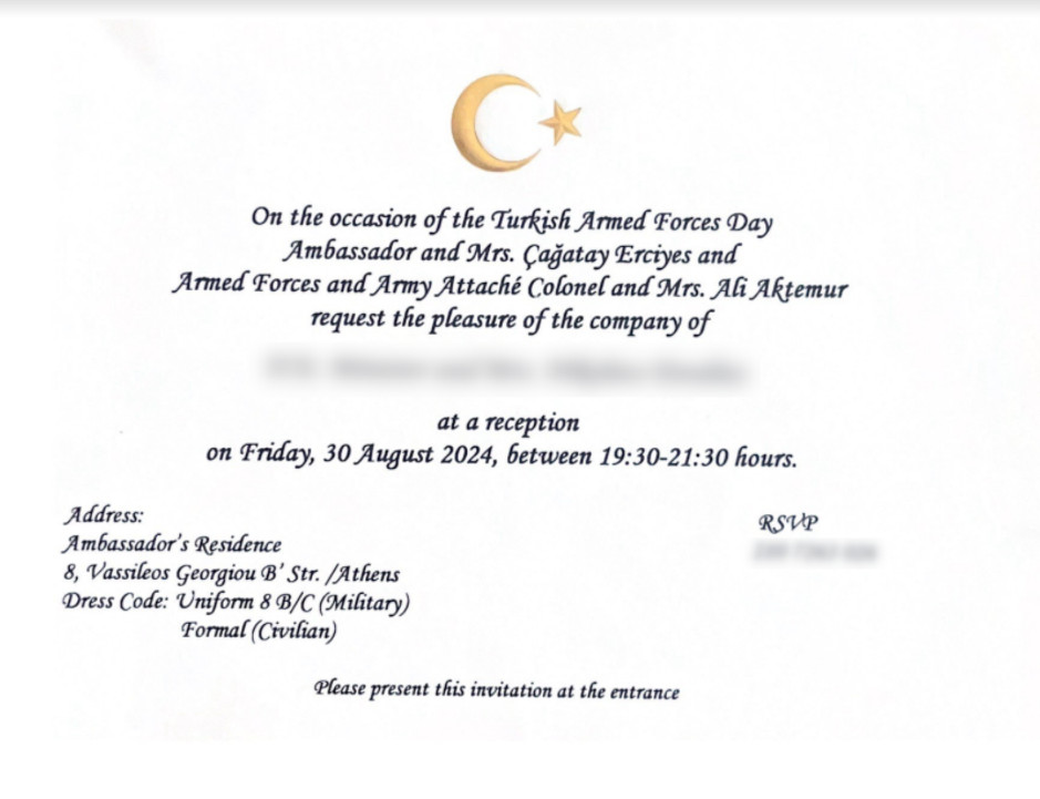 Η πρόσκληση για την «Ημέρα των Ενόπλων Δυνάμεων» και η ανάρτηση της τουρκικής πρεσβείας για την «Ημέρα της Νίκης»