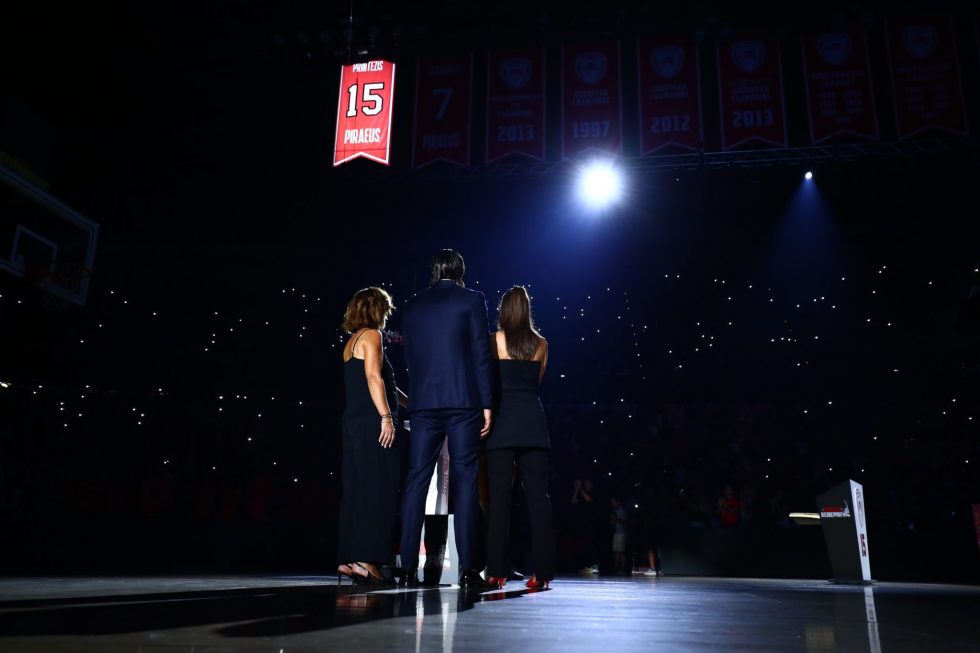 Η φανέλα του Γιώργου Πρίντεζη με τον αριθμό «15» για πάντα στην οροφή του ΣΕΦ.