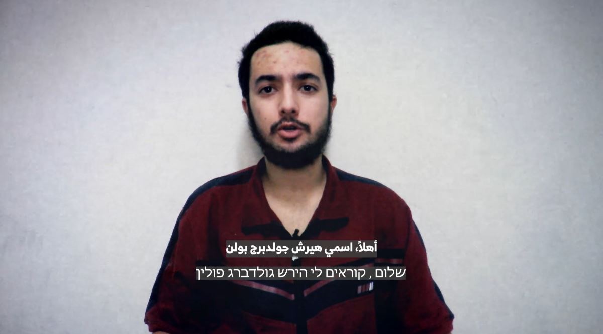 Ο Γκόλντμπεργκ-Πόλεν ξεκίνησε το μήνυμά του λέγοντας «Καλησπέρα, το όνομά μου είναι Χέρς Γκόλντμπεργκ-Πόλεν και έχω γεννηθεί στο Μπέρκλεί της καλυφόρνια και τώρα ζω στην Ιερουσαλήμ. Έχω διπλή υπηκοότητα των ΗΠΑ και του Ισραήλ. Έγινα 23 ετών 3 ημέρες πριν απαχθώ σε πάρτι στο δάσος την 7η Οκτωβρίου. Από τη στιγμή που έφτασα στη Γάζα επιβιώνω με ελάχιστη ιατρική περίθαλψη λίγο νερό και λίγο φαγητό. Δεν μπορώ να θυμηθώ την τελευταία φορά που είδα τον ήλιο ή πήρα μια ανάσα φρέσκου αέρα».