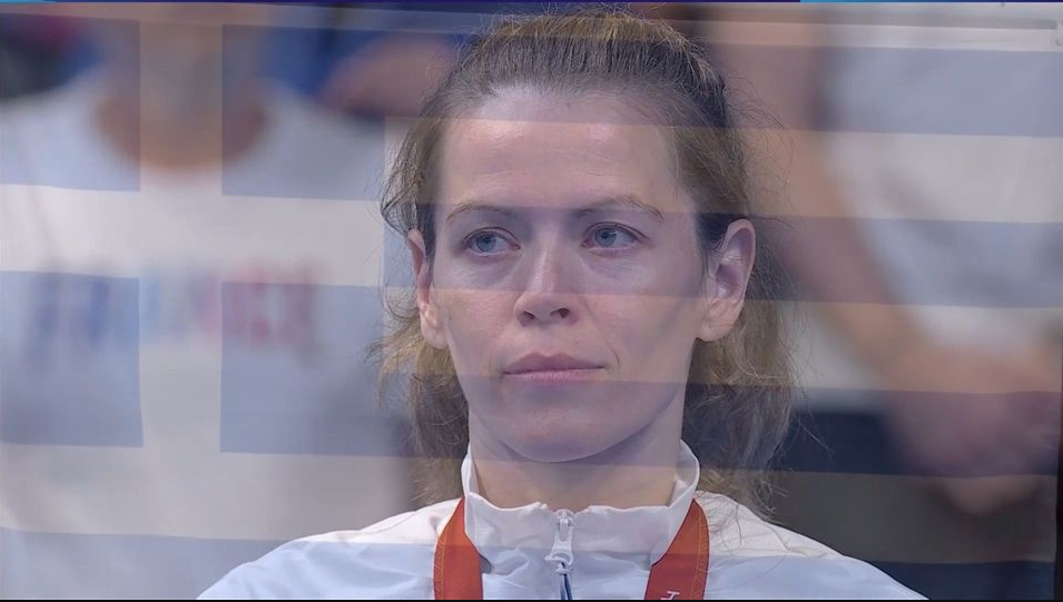 Η Αλεξάνδρα Σταματοπούλου στο πιο ψηλό σκαλί του βάθρου.