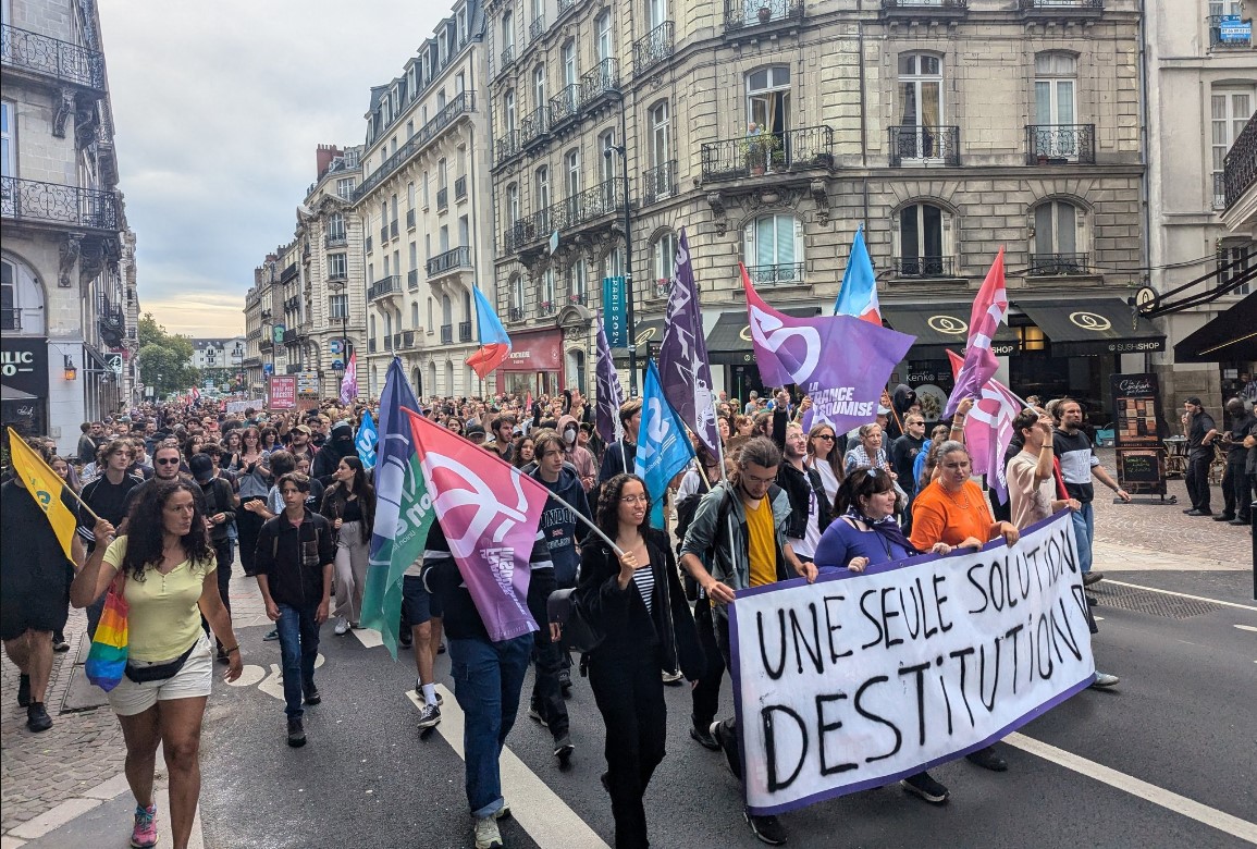 #BREAKING – #France: Huge protest NOW in #Nantes against appointment of politician #Barnier as Prime Minister by #Macron, who is considered as a «coup d’état» against the LFI Alliance who have won the legislative elections.