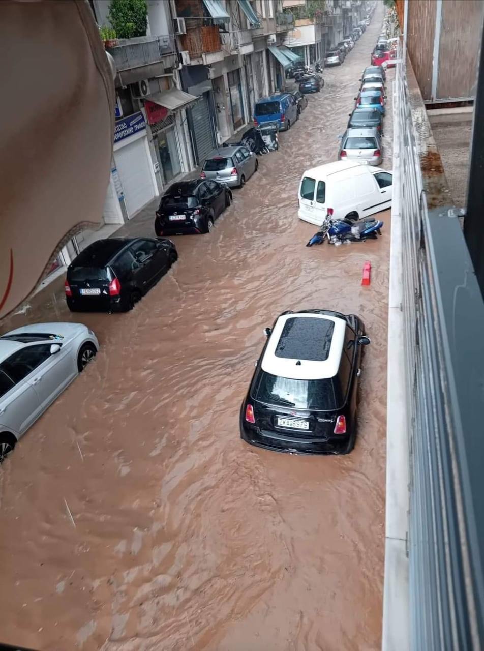 Στην οδό Aχαΐας στους Αμπελοκήπους, μία γυναίκα αναγκάστηκε να ανέβει στην οροφή του αυτοκινήτου της για να σωθεί, καθώς αυτό παρασυρόταν από τα ορμητικά νερά.