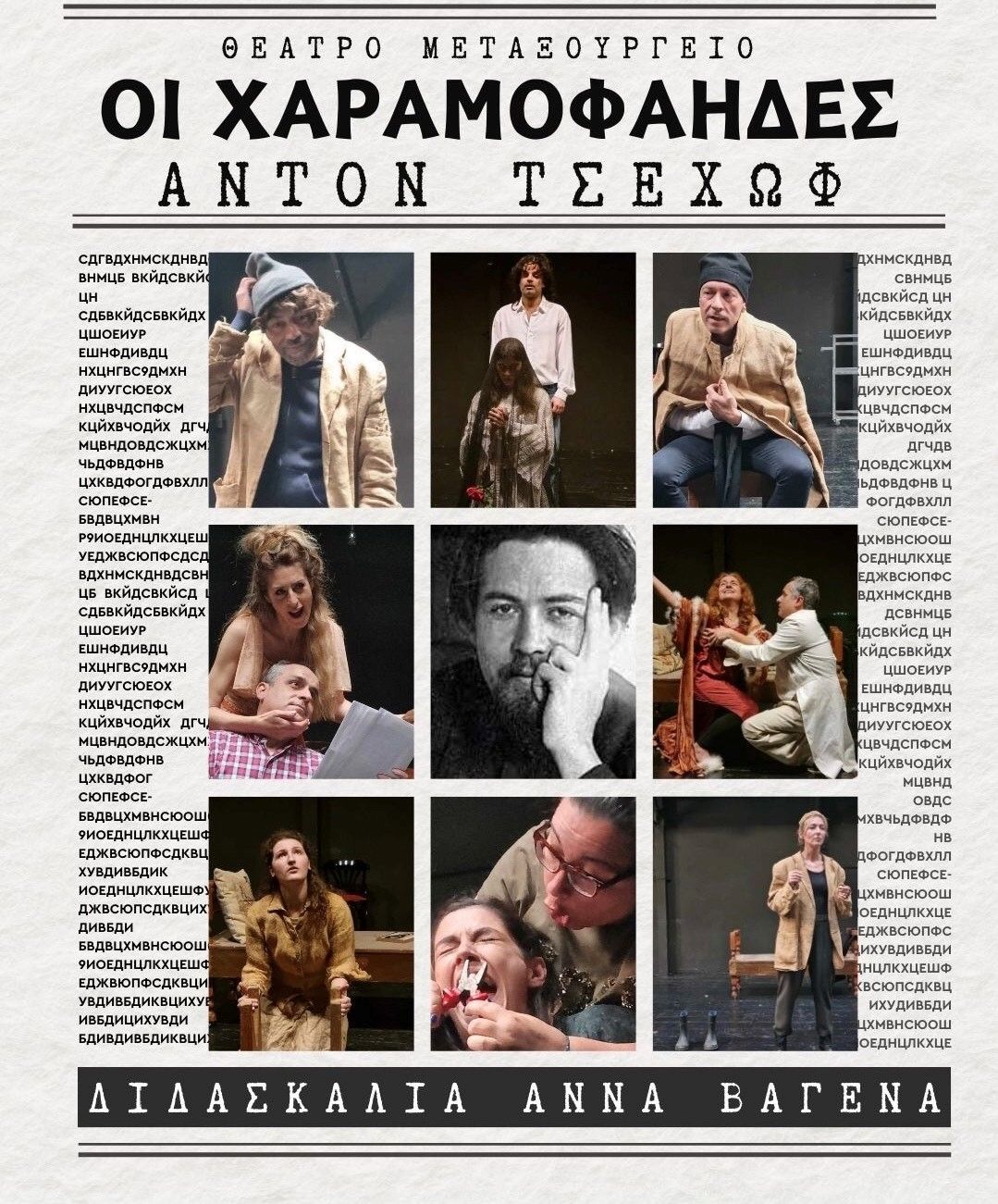 Από 19 Οκτωβρίου (κάθε Σάββατο απογευματινή στις 17:30) για 4 μόνο Σάββατα, η παράσταση «Οι χαραμοφάηδες» βασισμένη σε διηγήματα του Άντον Τσέχωφ, σε διδασκαλία Άννας Βαγενά. Η παράσταση πρωτοανέβηκε τον περασμένο Ιούνιο, ως αποτέλεσμα σεμιναρίου, και λόγω της μεγάλης επιτυχίας που είχε θα συνεχίσει σε αυτές τις ημερομηνίες.