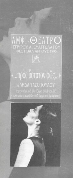 Αλλά η Λήδα μού έκανε και μια υπέρτατη τιμή. Στο ρεσιτάλ της με τίτλο «Προς ύστατον φως» (τώρα σκέπτομαι πως το πρωτοπαρουσίασε αφού πλέον της είχε ανοιχτεί η επώδυνη οδός και η θύρα του αγνώστου) έκανε μια σύνθεση με αποσπάσματα έξι τραγωδιών με ηρωίδες γυναίκες χρησιμοποιώντας αποκλειστικά μεταφράσεις μου.