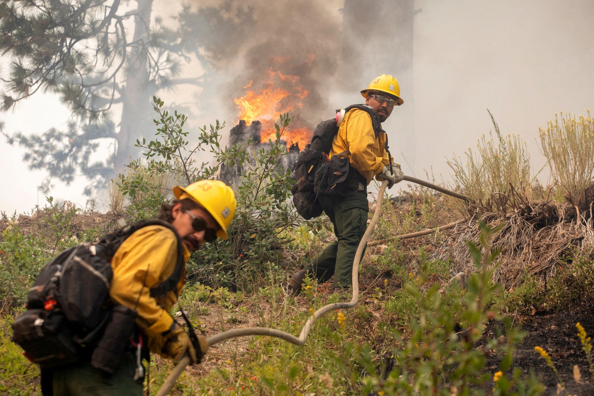 Ο σερίφης της κομητείας του Λος Άντζελες Ρόμπερτ Λούνα δήλωσε ότι τρεις άνθρωποι, ανάμεσά τους μέλος της ομάδας του, παγιδεύτηκαν εξαιτίας πυρκαγιάς σε απομονωμένη ζώνη κοντά στο Όρος Μπόλντι.