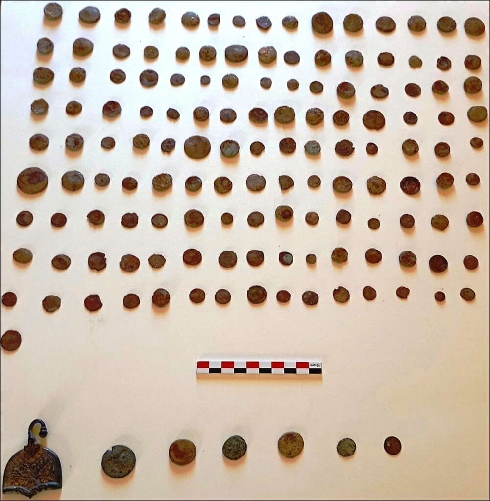 • 142 χάλκινα νομίσματα και 1 χάλκινη πόρπη ζώνης τα οποία χρονολογούνται από τα κλασικά έως τα οθωμανικά χρόνια (400 π.Χ. – 18ο αι.) και εμπίπτουν στις προστατευτικές διατάξεις του Νόμου που αφορά σε «Κύρωση Κώδικα νομοθεσίας για την προστασία των αρχαιοτήτων και εν γένει της πολιτιστικής κληρονομιάς» και είναι ιδιαίτερης αρχαιολογικής αξίας,