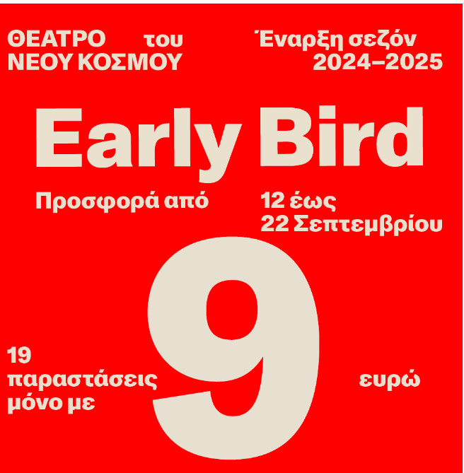 Το Θέατρο του Νέου Κόσμου, στο πνεύμα που απαιτεί η εποχή μας, προσφέρει για άλλη μια χρονιά στο κοινό του την ευκαιρία να προμηθευτεί εισιτήρια για όλες τις παραστάσεις του στην τιμή των 9€!