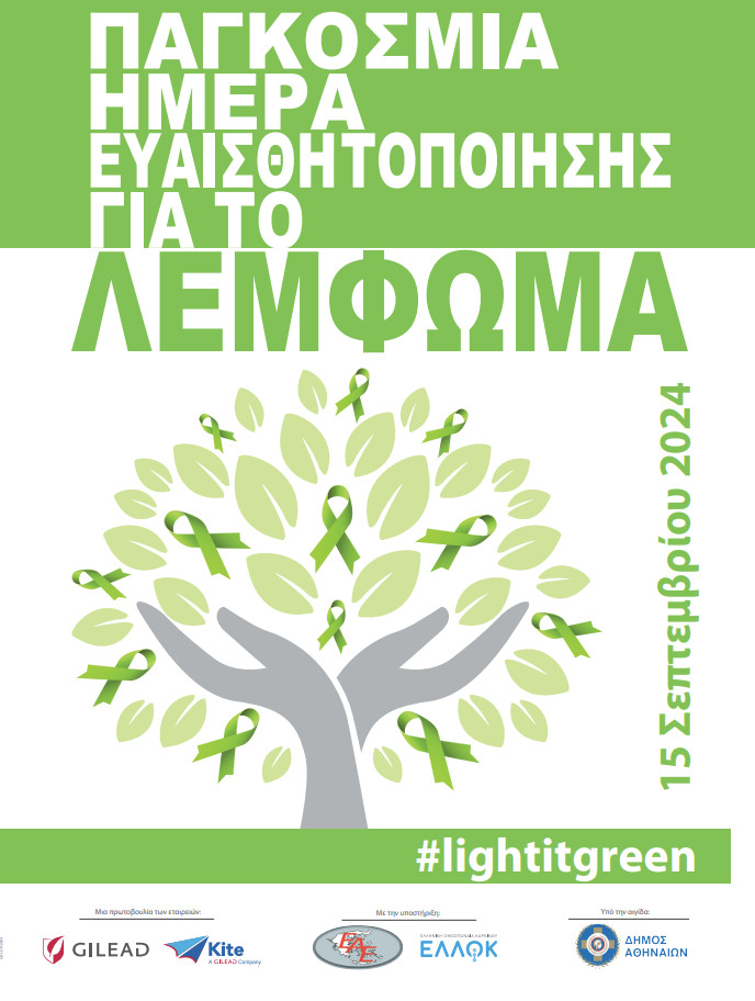 Με αφορμή την Παγκόσμια Ημέρα Ευαισθητοποίησης για το Λέμφωμα, η βιοφαρμακευτική εταιρεία Gilead Sciences, σε συνεργασία με την Ελληνική Αιματολογική Εταιρεία, την Ελληνική Ομοσπονδία Καρκίνου (ΕΛΛΟΚ), και υπό την αιγίδα του Δήμου Αθηναίων, πραγματοποιεί και φέτος εκστρατεία ενημέρωσης και ευαισθητοποίησης με κεντρικό μήνυμα «Light It Green». Η πρωτοβουλία έχει ως στόχο να ενισχύσει την κατανόηση γύρω από το λέμφωμα καθώς και να προωθήσει τη σημασία της έγκαιρης διάγνωσης και θεραπείας των αιματολογικών καρκίνων.