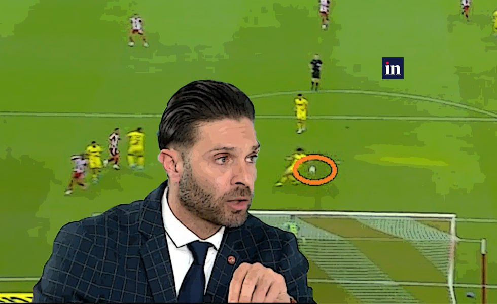 «Χάνει τη φάση ο αμυντικός, ρισκάρει και η μπάλα βρίσκει στο χέρι του που είναι σε αφύσικη θέση», ήταν το σχόλιό του.