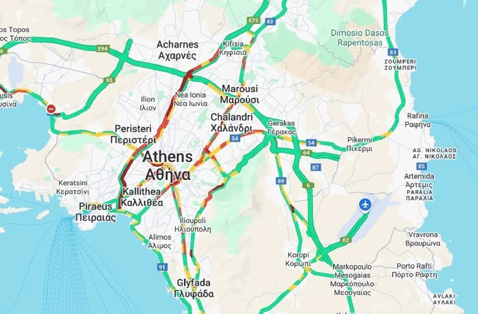 Καθυστερήσεις υπάρχουν στις λεωφόρους Κηφισίας και Μεσογείων, αλλά και στην Κατεχάκη.