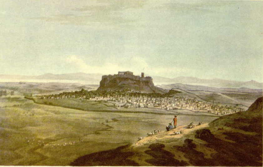 Στην κεντρική φωτογραφία του παρόντος άρθρου, η Αθήνα του 1810 (στο βάθος αριστερά εικονίζονται τα ερείπια του ναού του Ολυμπίου Διός, δεξιά το Θησείο).