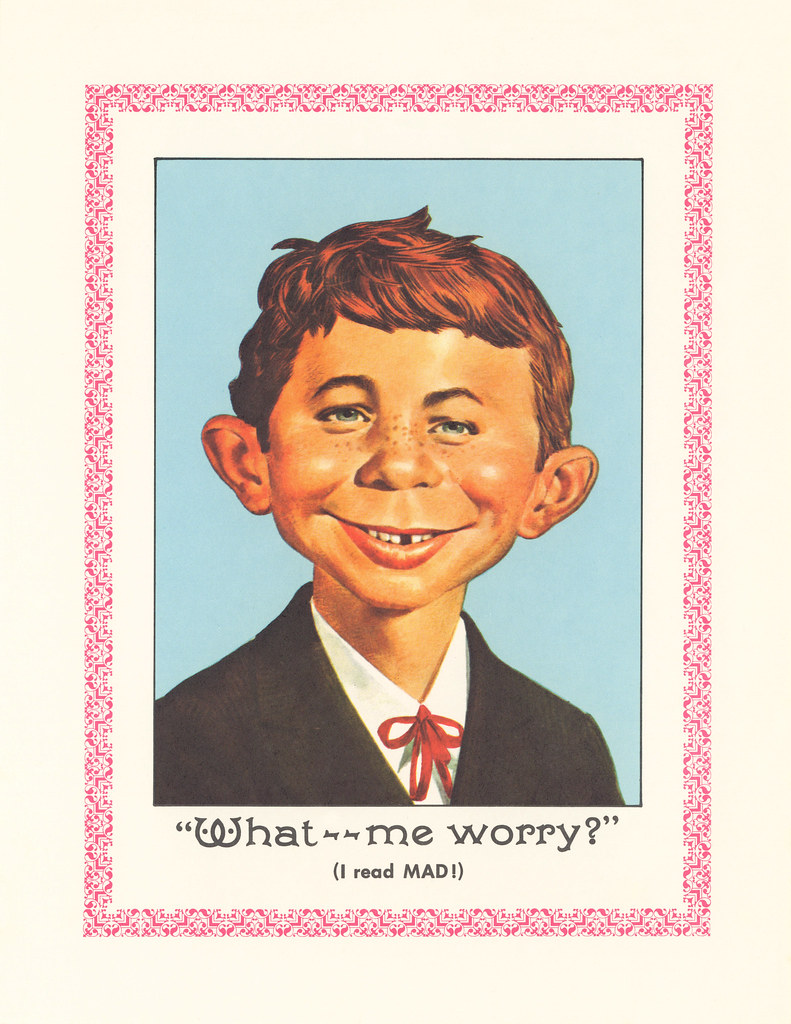 Εξίσου αναγνωρίσιμο ήταν και το κενό βλέμμα που τα ίδια παιδιά ήξεραν ότι προκαλούσε την αποστομωτική ερώτηση «Me Worry?» («Με Βλέπεις να Ανησυχώ;»).