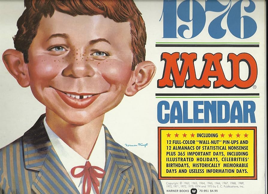 Η χαρακτηριστική ευφυΐα του σκιτσογράφου Al Jaffee μετέτρεψε το κεντρικό, τρίπτυχο εξώφυλλο του Playboy αλλά από την ανάποδη. Η «αναδίπλωση» απαιτούσε να γίνει ακριβώς αυτό στο εσωτερικό πίσω εξώφυλλο, το οποίο ο Gaines λάτρευε επειδή πίστευε ότι οι φανατικοί θα αγόραζαν δύο αντίτυπα: το ένα θα καταστρεφόταν και το άλλο θα διατηρούνταν παρθένο. Η πρώτη προσπάθεια του Jaffee, η πρώτη από τις 33 ασπρόμαυρες, ήταν κατασκευασμένη γύρω από την καυτή υπόθεση Λιζ Τέιλορ-Ρίτσαρντ Μπάρτον.