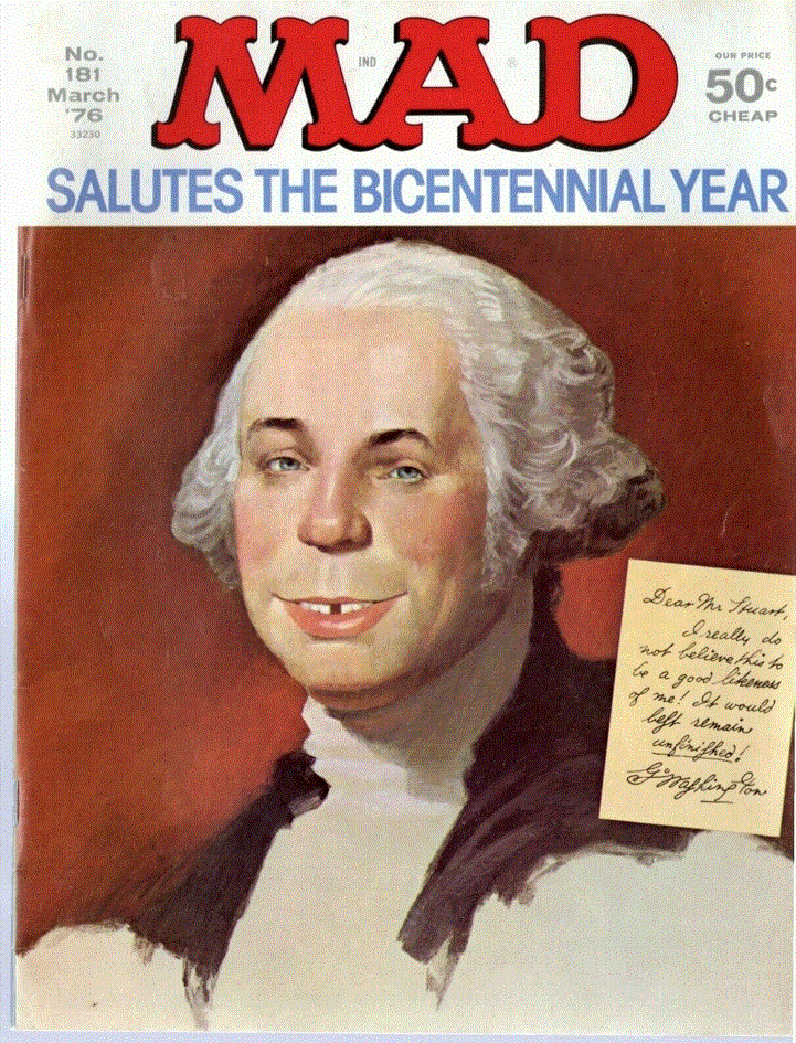 Εμπνευσμένη από τo Athenaeum, τον πίνακα του 1796 του Gilbert Stuart που υπάρχει στο χαρτονόμισμα του ενός δολαρίου και δείχνει τον Ουάσινγκτον με πρησμένα, ερμητικά κλειστά χείλη λόγω μιας νέας οδοντοστοιχίας που δεν του ταίριαζε καλά, η φρέσκια έκδοση του 1976 είχε ένα χαμόγελο με κενό δόντι, άμεσα αναγνωρίσιμο από τους ατίθασους μαθητές των γυμνασίων της Αμερικής.