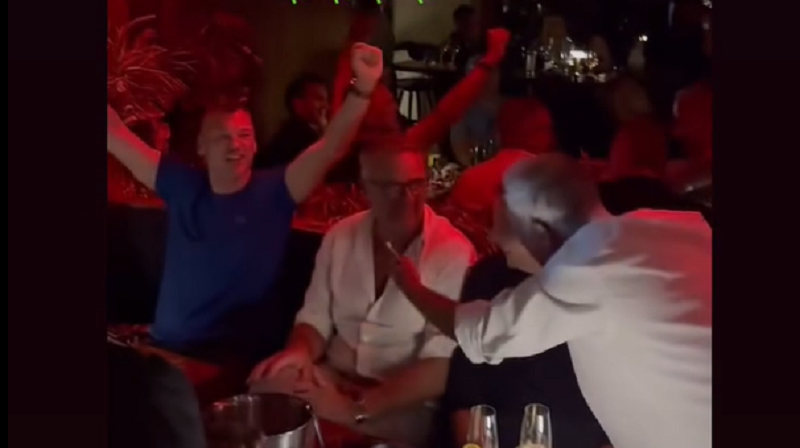 Ο Σάρας τραγούδησε μαζί με τον Διαμαντίδη τον ύμνο του Παναθηναϊκού, ξεσηκώνοντας τον κόσμο που είχε βρεθεί στο μαγαζί για να διασκεδάσει.