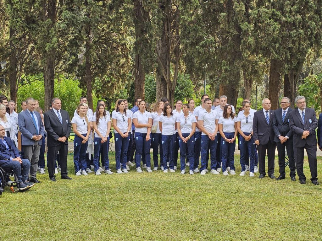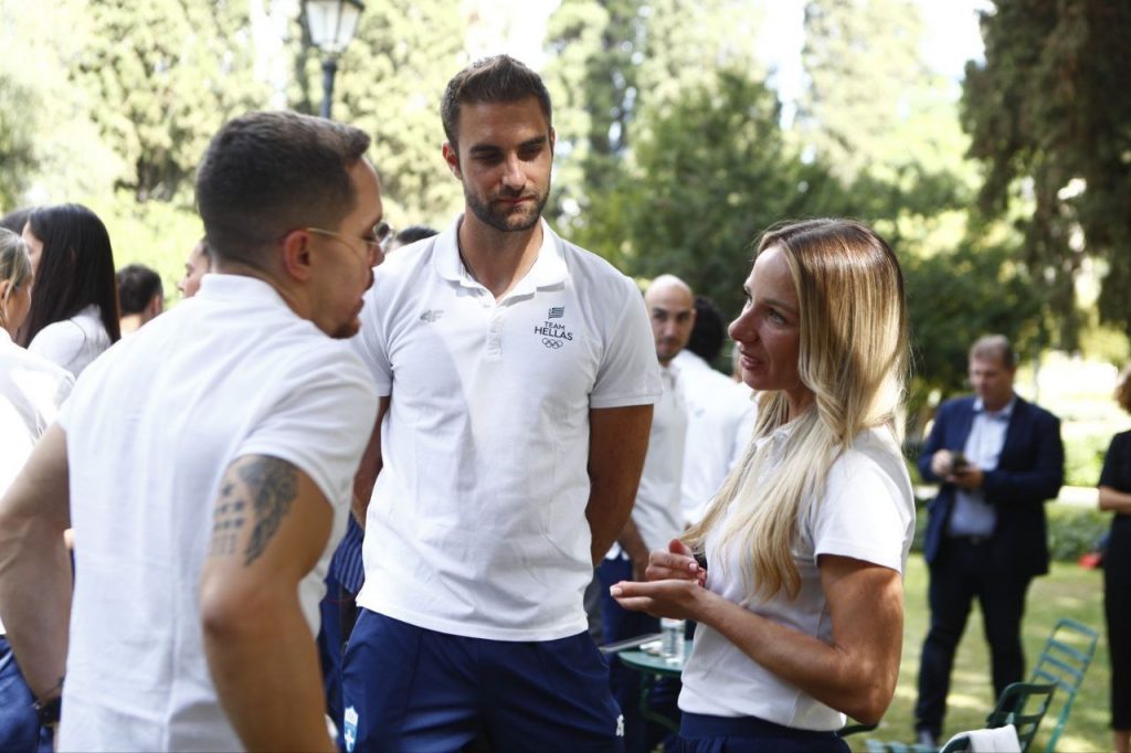 Στη συνέχεια χαιρέτησε έναν προς έναν όλους τους αθλητές και τις αθλήτριες, ξεκινώντας από την Παραολυμπιακή Ομάδα, με τον Γενικό Γραμματέα Αθλητισμού Γιώργο Μαυρωτά να κάνει τις απαραίτητες συστάσεις.