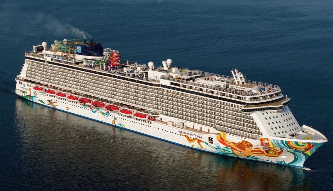 Πρόκειται για το κρουαζιερόπλοιο «Norwegian Getaway», το οποίο μεταφέρει περισσότερους από 4.000 επιβάτες, αριθμό συγκρίσιμο με τον πληθυσμό μιας κωμόπολης όπως το Σουφλί στη Θράκη ή η Νέα Μαγνησία.
