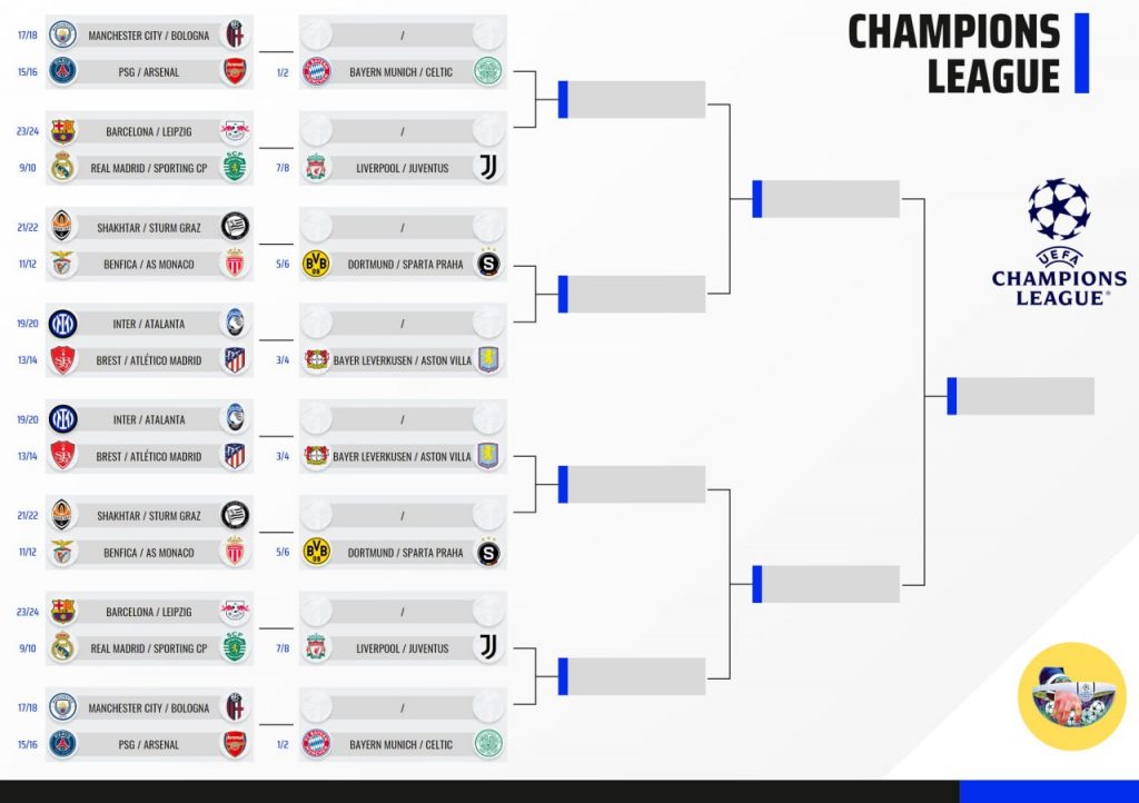 Οσον αφορά τη φάση των 16 η Μπάγερν μπορεί να ζευγάρωνε με μία εκ των Μάντσεστερ Σίτι, Αρσεναλ ή Παρί, η Λίβερπουλ με την Μπαρτσελόνα ή τη Ρεάλ, και η Λεβερκούζεν με την Ατλέτικο ή την Ιντερ.