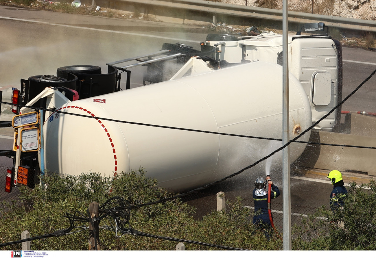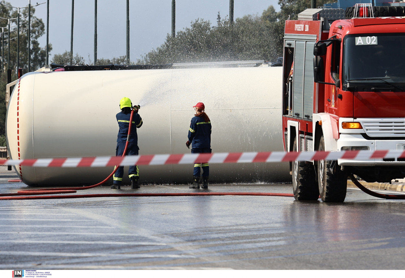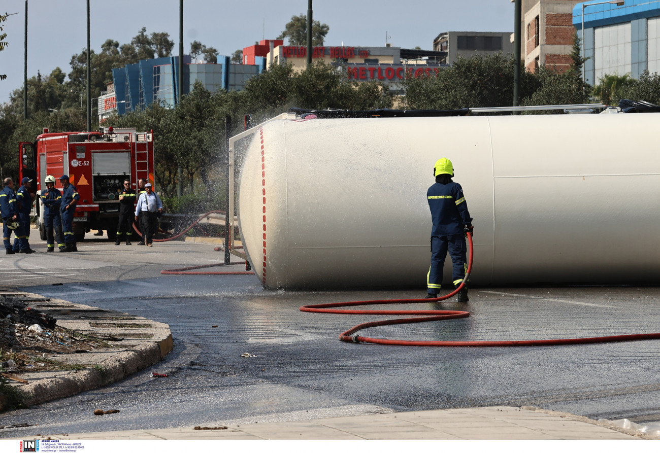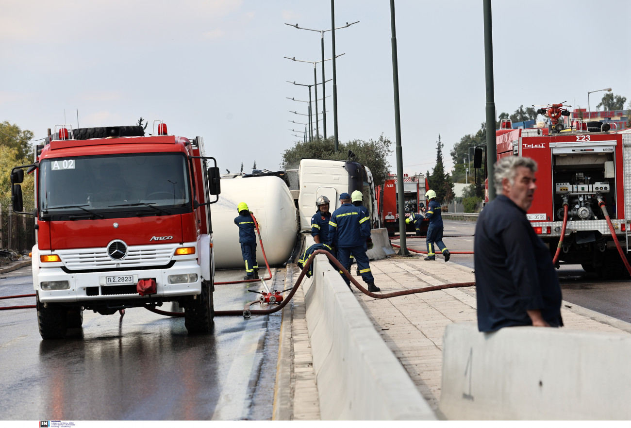 Ανατροπή βυτιοφόρου στη λεωφόρο Σχιστού: Εκκενώνεται δομή για λόγους ασφαλείας