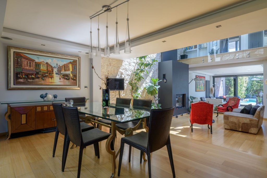 Εξωτερικά, το ακίνητο περιβάλλεται από καταπράσινο κήπο, ο οποίος φιλοξενεί μια εντυπωσιακή πισίνα και μια κομψή τραπεζαρία δίπλα στο BBQ – ο ιδανικός χώρος για καλοκαιρινά βράδια κάτω από τα αστέρια. Εδώ θα δημιουργηθούν οι πιο όμορφες αναμνήσεις σας, από φιλικές συγκεντρώσεις έως χαλαρωτικά απογεύματα στον δροσερό κήπο.