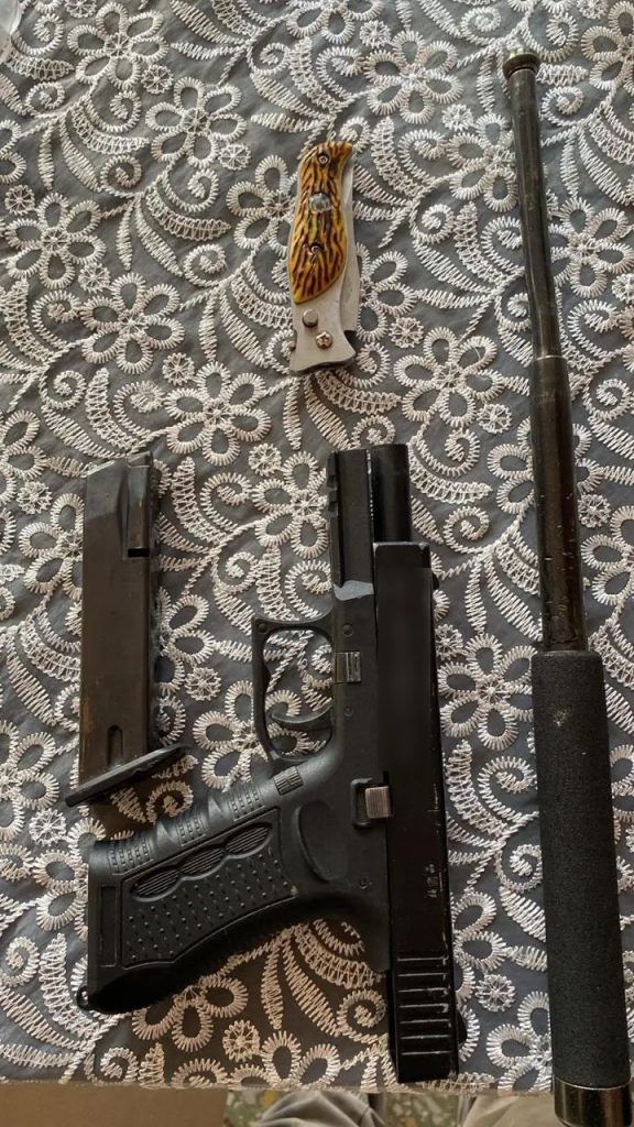 Στις κατ’ οίκον έρευνες που έγιναν καθώς και σε άλλους χώρους εντοπίστηκαν μεταξύ άλλων 6 όπλα, 287 σφαίρες μαχαίρια και γκλοπ.
