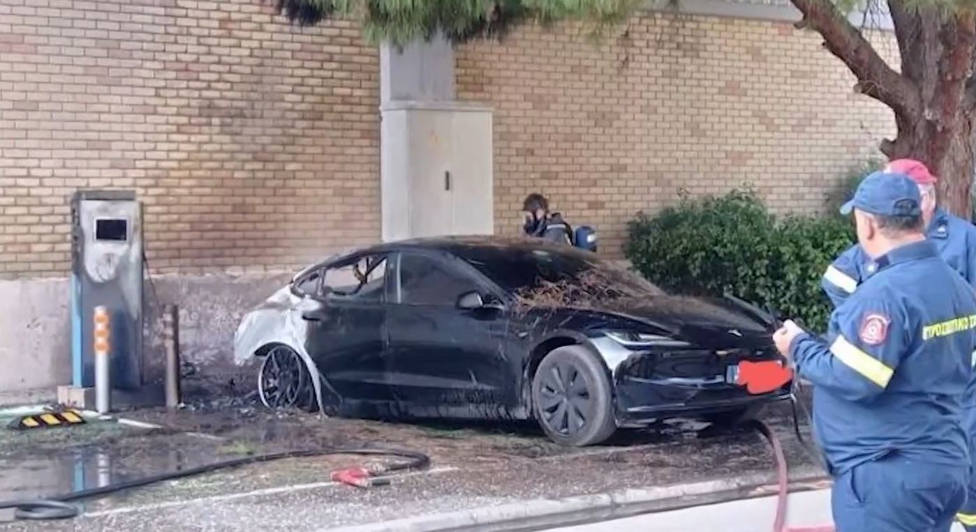 Η εικόνα από το Tesla μισοκαμένο στο Χαλάνδρι την ώρα που ήταν στον φορτιστή σοκάρει. Στην οδό Αγίας Παρασκευής στο Χαλάνδρι Αττικής έσπευσε η πυροσβεστική με ισχυρότατες δυνάμεις καταφέρνοντας τα πληρώματα 3 οχημάτων να σβήσουν τη φωτιά. Το αμάξι έγινε, δυστυχώς, παρανάλωμα του πυρός.