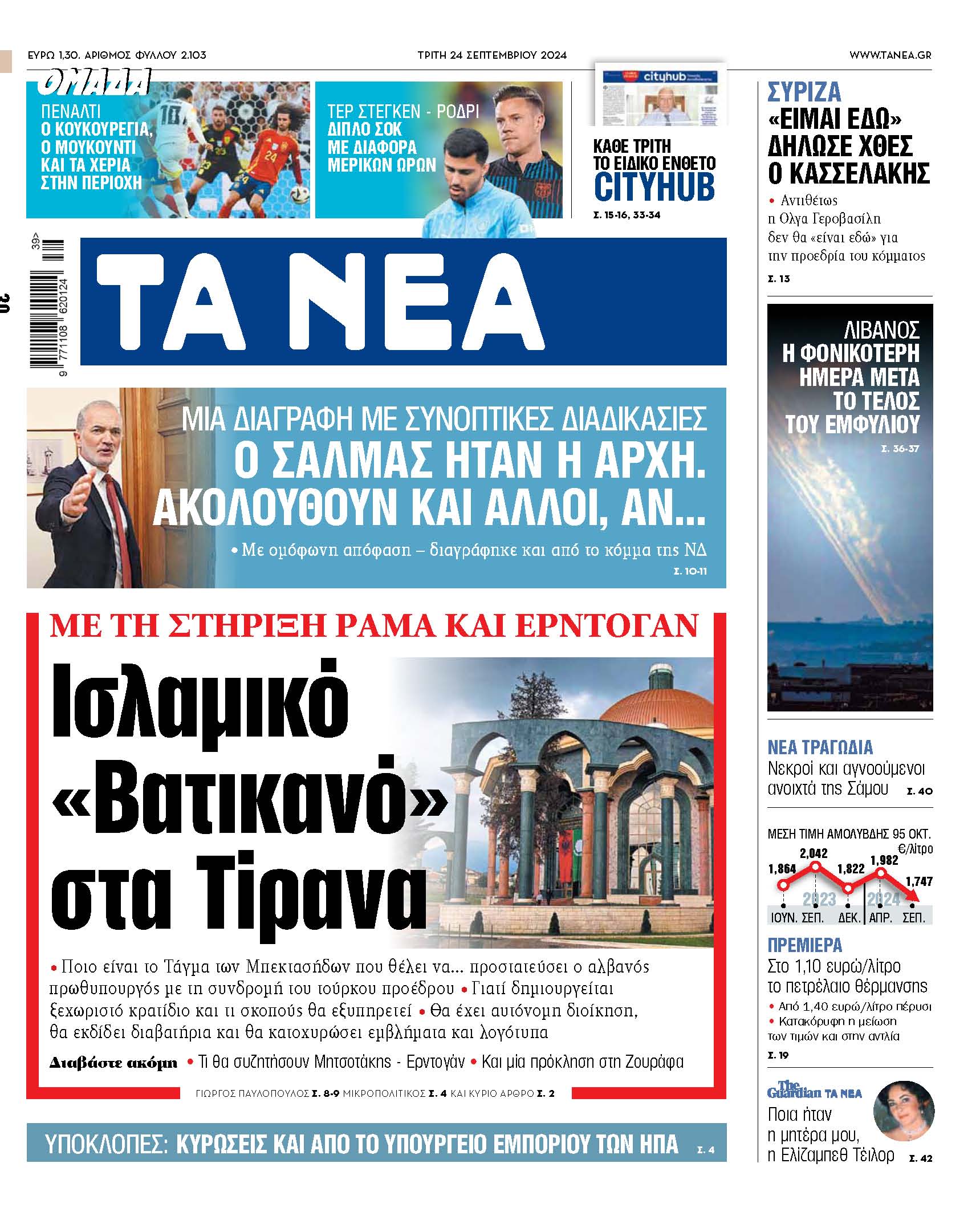 Στα «ΝΕΑ» της Τρίτης: Ισλαμικό «Βατικανό» στα Τίρανα