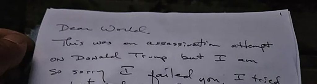 Απόπειρα δολοφονίας κατά Τραμπ: Στην δημοσιότητα χειρόγραφο του δράστη