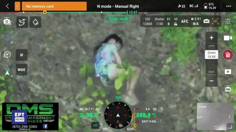 Η εξαφάνιση του κοριτσιού ευαισθητοποίησε επαγγελματία χειριστή drone από το Αρκάνσας, πάνω από 200 χιλιόμετρα μακριά, ο οποίος πήρε τον εξοπλισμό του και έτρεξε να βοηθήσει.