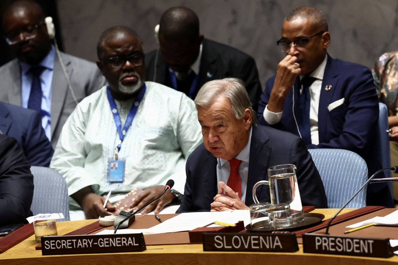 Ο Γκουτέρες είπε ότι «η ταχύτητα και η κλίμακα της καταστροφής και των δολοφονιών στη Γάζα δεν έχουν καμία σχέση με οτιδήποτε άλλο στα χρόνια που είμαι γενικός γραμματέας». Σημείωσε ότι πάνω από 200 υπάλληλοι του ΟΗΕ έχουν σκοτωθεί. Πρότεινε η διεθνής κοινότητα «να κινητοποιηθεί για την άμεση κατάπαυση του πυρός, την άμεση και άνευ όρων απελευθέρωση των ομήρων και την έναρξη μιας μη αναστρέψιμης διαδικασίας προς μια λύση δύο κρατών».