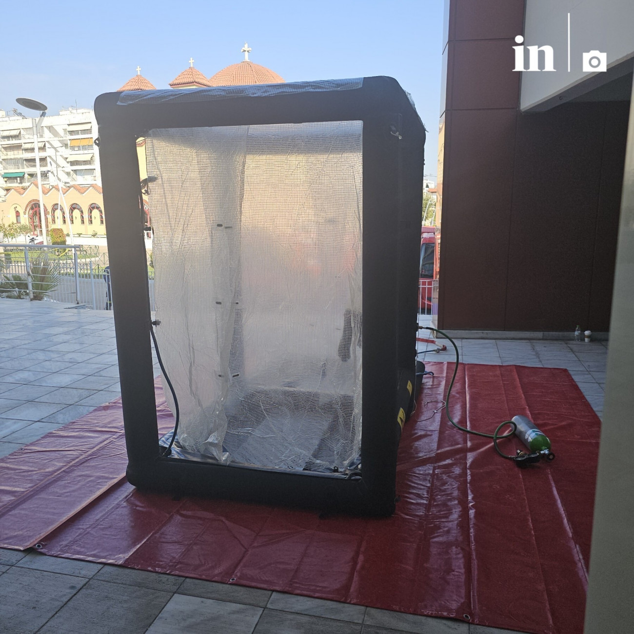 Οι ειδικά εκπαιδευμένοι άνδρες της ΕΜΑΚ παρέλαβαν τον φάκελο και θα προχωρήσουν στην ταυτοποίηση του περιεχομένου του, σε ειδικό χώρο που στήθηκε έξω από το δημαρχείο Περιστερίου.
