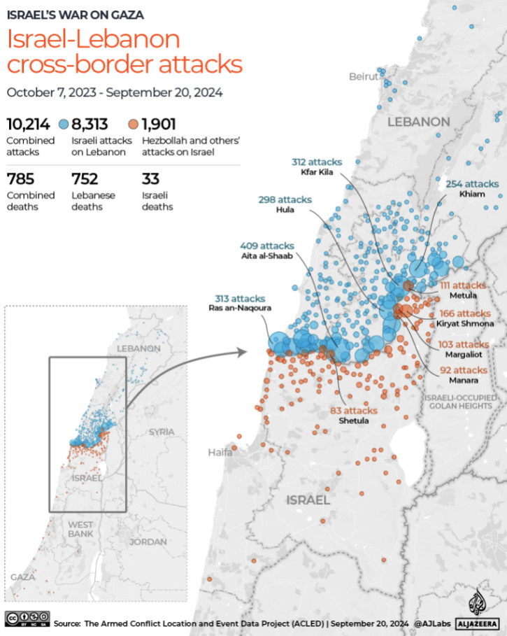 Τα γραφήματα του Al Jazeera για τις επιθέσεις στα σύνορα Ισραήλ και Λιβάνου