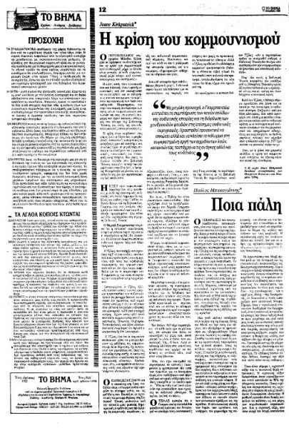 Υπάρχει ιστορικά μια τεράστια συμβολή της «εργατικής τάξης» στις εξελίξεις που οδήγησαν στη σύγχρονη εποχή. Αυτή όμως έγκειται στο ρόλο της σην παραγωγή και όχι στην άσκηση της εξουσίας. Μέσα από την παραγωγή διευρύνθηκε και κατέληξε να είναι το συγκρότημα εργασίας σήμερα ο μεγάλος κοινωνικός χώρος, που μπορεί να γίνει αφετηρία για μια ανοιχτή κοινωνία. Σ’ αυτήν την ανοιχτή κοινωνία, που δίνει ρόλους και όχι τάξεις, μπορούμε να αναζητήσουμε δομές και μορφές της νέας συλλογικότητας που χρειαζόμαστε. Στην ανοιχτή κοινωνία δημιουργούνται οι συνθήκες για την παραπέρα απελευθέρωση του ανθρώπου, την ολοκλήρωση της δημοκρατίας και την πραγματική, απρόσκοπτη πρόοδο. Στην πολιτική, μέσα στην ανοιχτή κοινωνία, έχουν θέση όλα τα κόμματα. Τα δημοκρατικά όμως κόμματα διαθέτουν το συγκριτικό πλεονέκτημα ότι εξελίχτηκαν μέσα από διαδικασίες παράλληλες με τη γενική πορεία προς την ανοιχτή κοινωνία και σε μεγάλο βαθμό συνέβαλαν στο να είναι σήμερα αυτή ορατή και δυνατή. Τα μαρξιστικά κόμματα χρειάζεται να απαλλαγούν από τα ταξικά τους δόγματα και τη φεουδαρχική τους δομή, για να έχουν θέση σε μια τέτοια πορεία ή, τουλάχιστον, να μην τη στρεβλώνουν και την καθυστερούν.