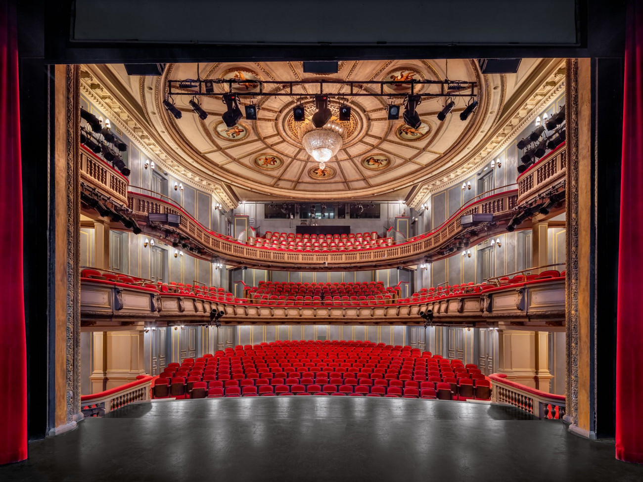 Τα σχέδιά του για την όψη και τους εσωτερικούς χώρους του θεάτρου αντλούν στοιχεία από τα πρότυπα του εκλεκτισμού, συνδυάζοντας επιρροές από τον Νεοκλασικισμό και το Μπαρόκ.