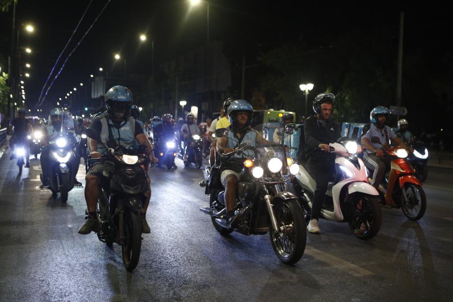 Στη συνέχεια πραγματοποίησαν μεγάλη μοτοπορεία στους δρόμους του κέντρου της Αθήνας.