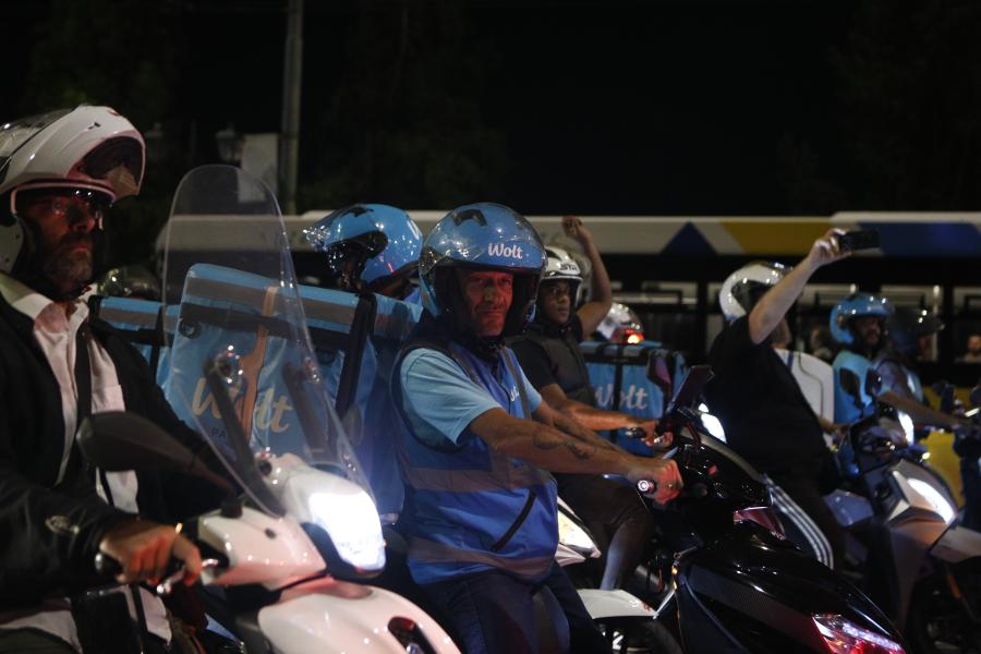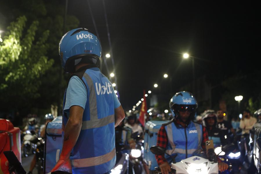 Συνεχίζουν τις κινητοποιήσεις οι διανομείς της Wolt διεκδικώντας καλύτερες συνθήκες εργασίας.